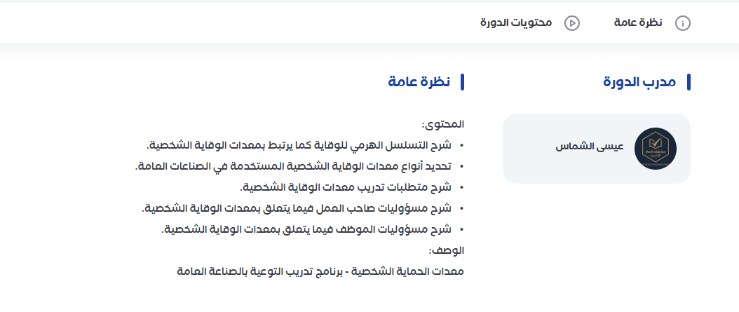 من خلال نظرة عامة تظهر تفاصيل الدورة